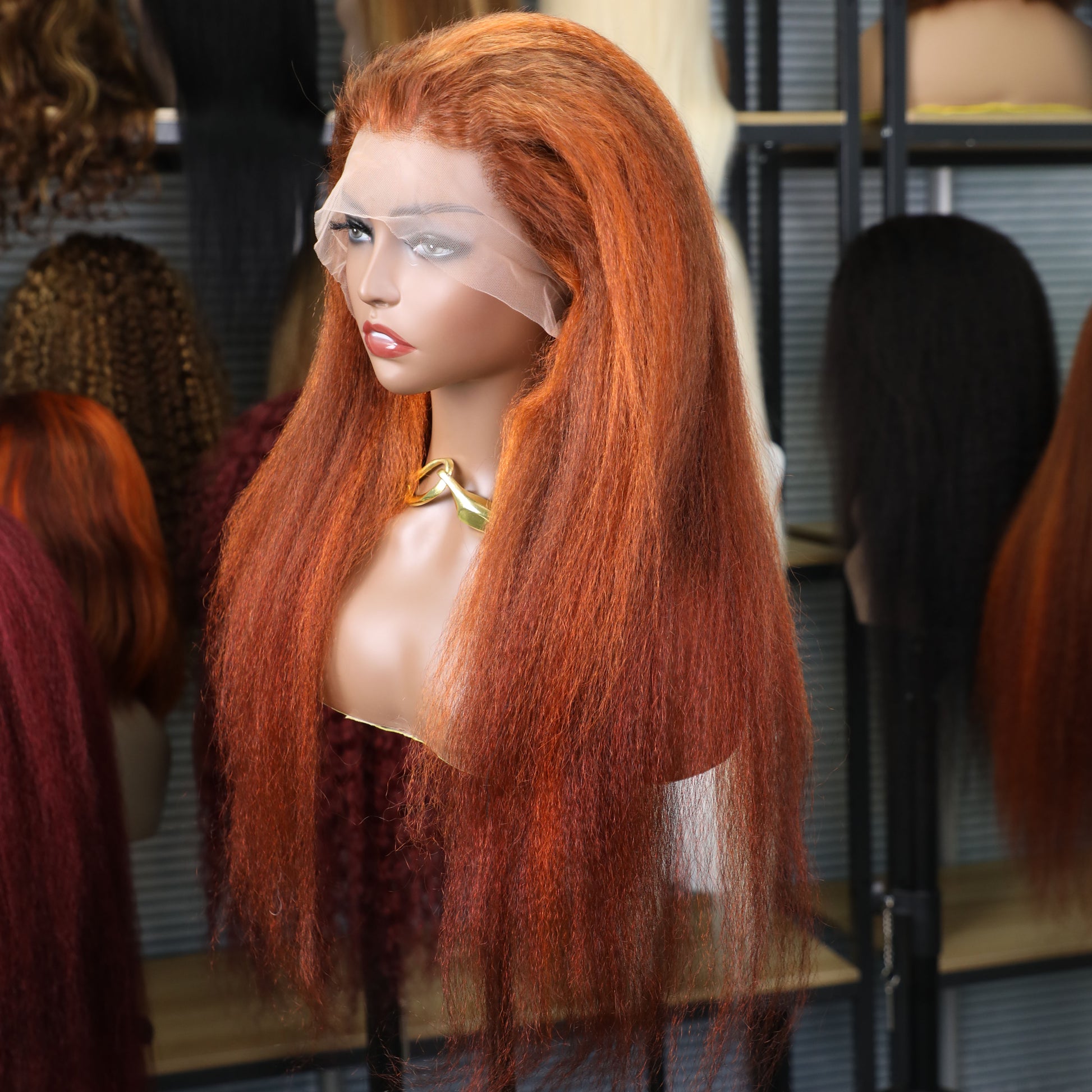 Kinky Straight 4/350 Highlight 13x4 HD Lace Frontal Human Hair Wigs Ginger Brown Piano Colored Yaki Straight Human Hair